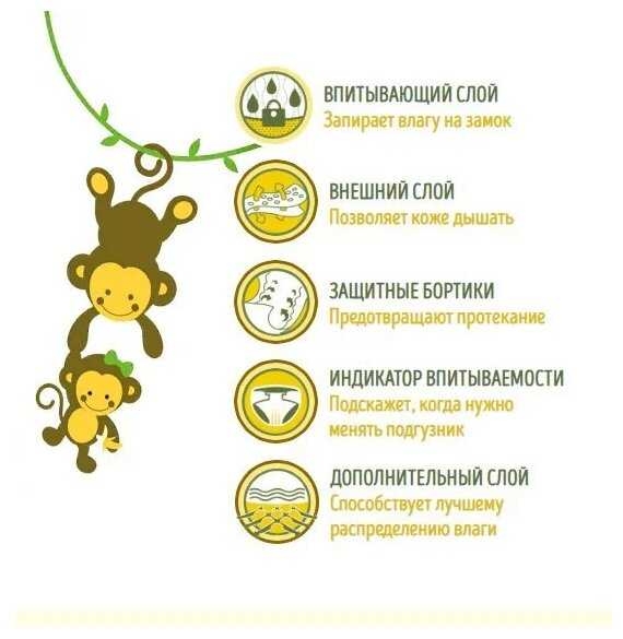 - Индикатор намокания помогает timely менять, что упрощает уход за ребенком.