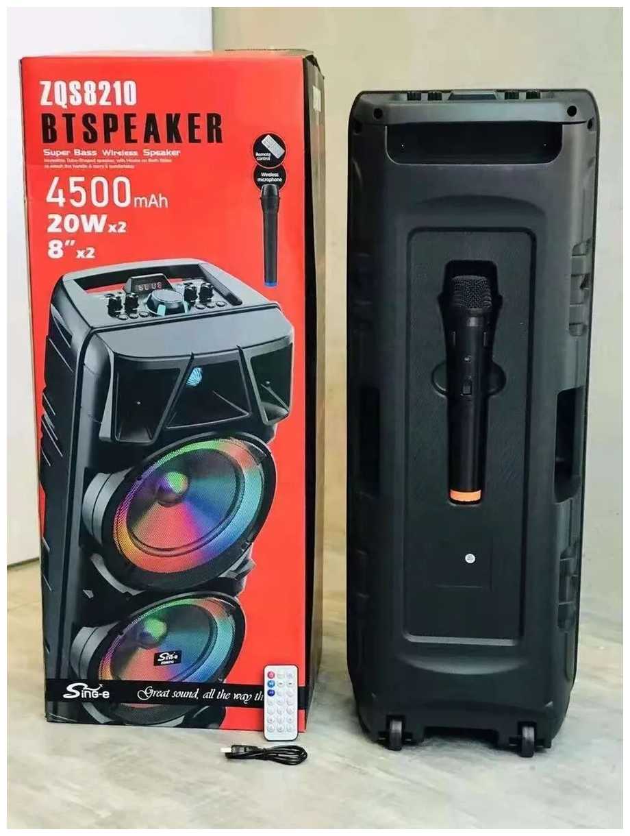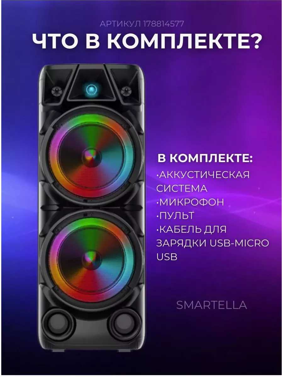 доставка продавца быстрая и вся коробка замотана в пупырку - - Штатный беспроводной микрофон на 3+ ( фонит рядом с колонкой )Но есть штекер под провод так что не критично