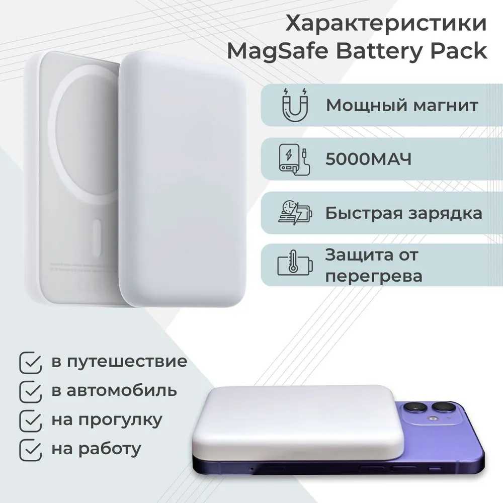 | Комплектация : | Magsafe 5000 mAh, Чехол Magsafe, Кабель Type-C Lightning 1M |