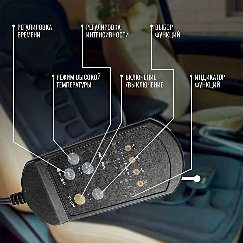 Пульт позволяет выбирать между 3-5 режимами: от легкой вибрации до интенсивного "постукивания" с регулировкой силы воздействия. Интерфейс интуитивен, но яркая подсветка кнопок может мешать в темноте. Таймер автоматически отключает накидку через 15 или 30 минут, предотвращая перегрев. Пользователи ценят возможность комбинировать массаж зон с подогревом. -
