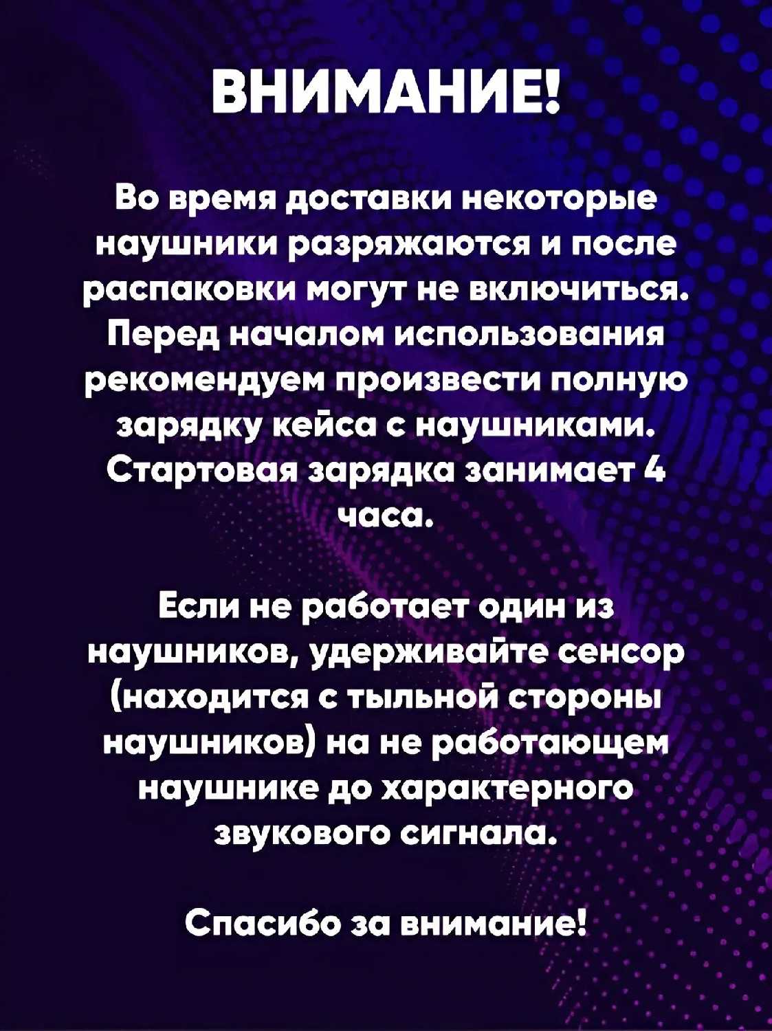 Беспроводные TWS наушники PRO 12S - просто потрясающие! Я в восторге от качества звука, которое они предоставляют. Басы мощные, высокие чистые, а общая звуковая сцена поражает своей глубиной. Удобные и хорошо сидят в ушах благодаря различным размерам амбушюров. Кроме того, функция шумоподавления позволяет наслаждаться музыкой или звонками без посторонних шумов. Батарея держит заряд долго, что позволяет использовать их на протяжении всего дня. А дизайн - просто шик! Очень довольна покупкой и рекомендую всем, кто ищет отличные беспроводные наушники!