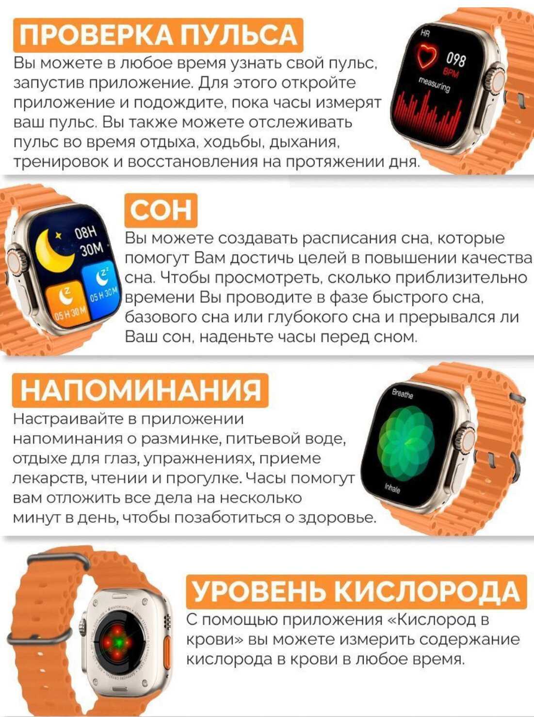| Мониторинг : | пульса, сна, температуры тела, термометр, тонометр, уровня кислорода в крови, физической активности |