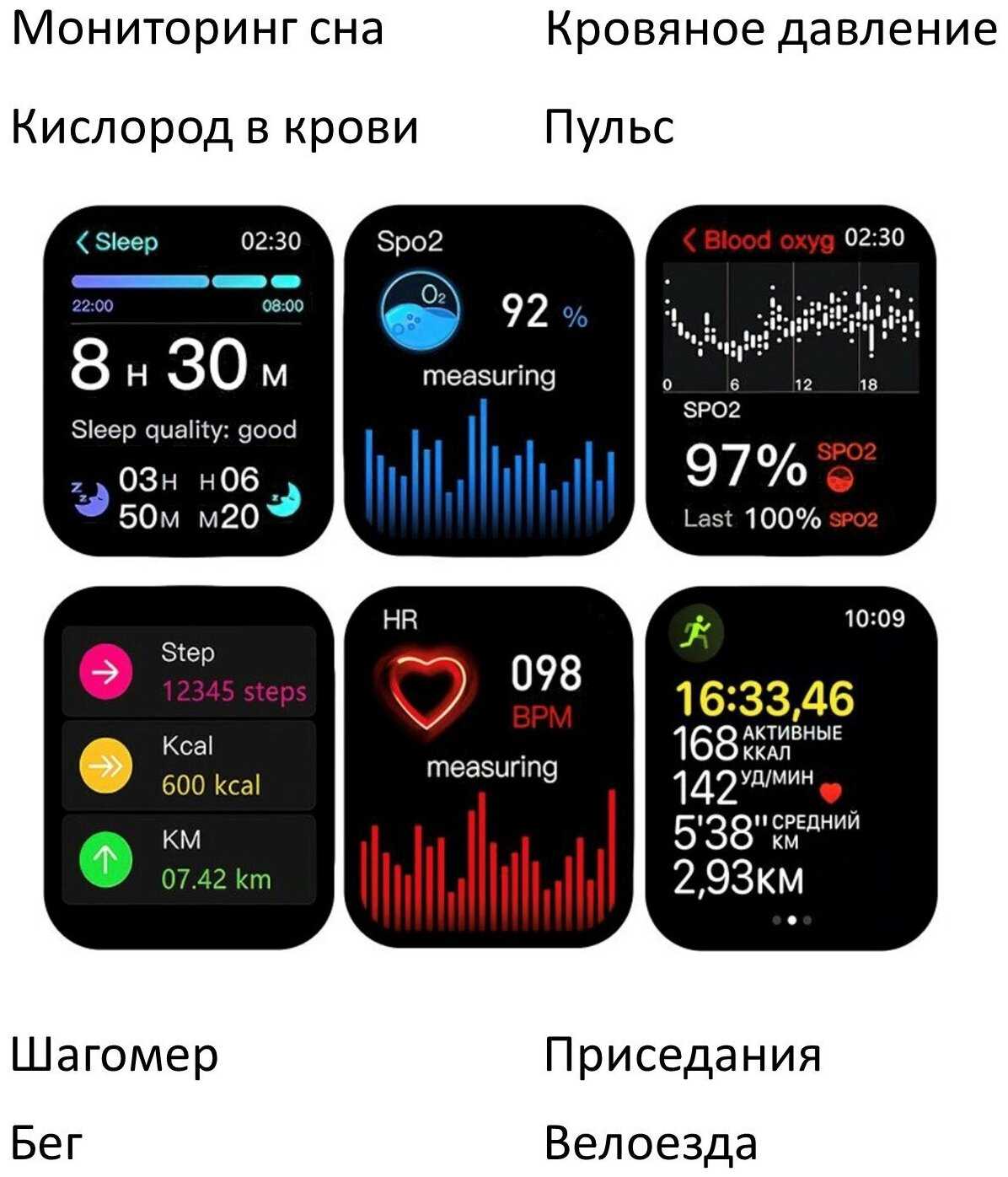 | Мониторинг : | пульса, сна, температуры тела, термометр, тонометр, уровня кислорода в крови, уровня стресса, физической активности |