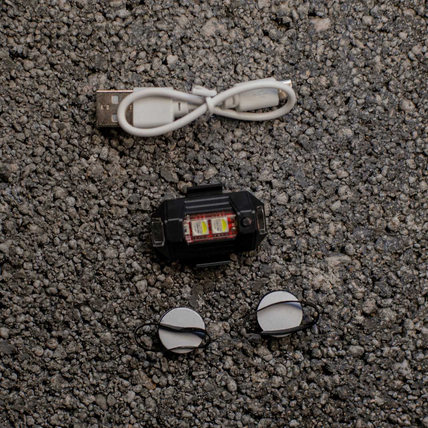 Особенности : | USB-зарядка, для детей, индикация заряда, маячок, на липучке, прожектор |