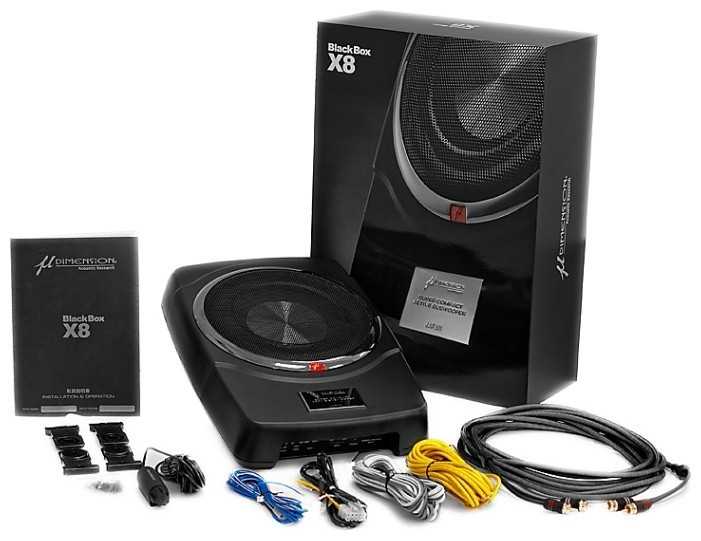 - + Компактный, (влез под водительское сидение VW Jetta 2013 г.в., но навряд ли влезет в авто меньших габаритов), полный комплект для подключения, выносной регулятор уровня громкости.