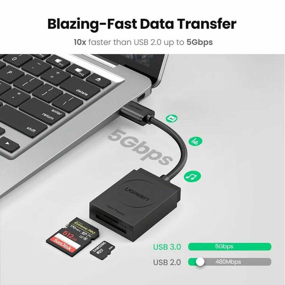 Отличный кардридер с честной (в отличие от дешёвых за 400 р.) скоростью передачи данных USB 3, что особенно актуально для постоянной работы с большими объёмами данных.