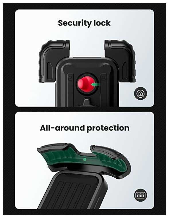 - - Слабая фиксация на руле, не удобно фиксировать быстрозажимной механизм. 14 pro max в чехле помещается с трудом - мешает защита камер.