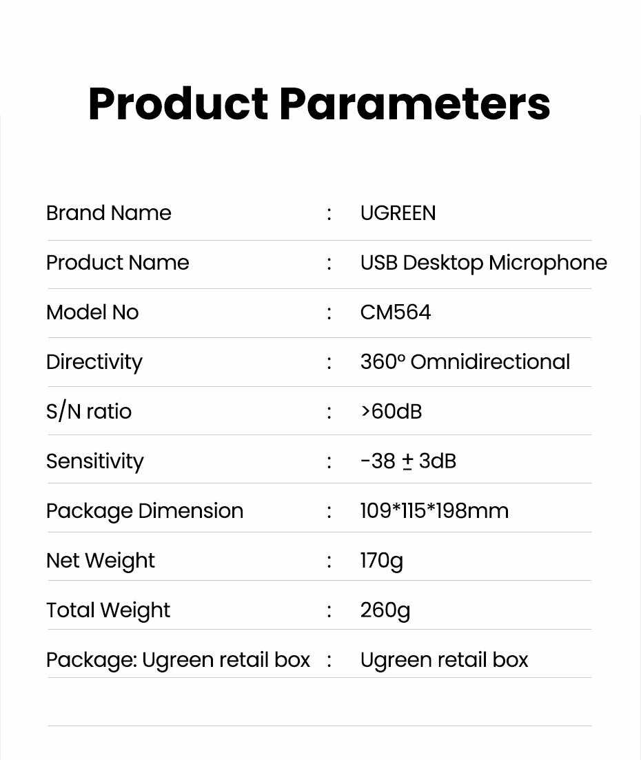 Характеристи UGreen Микрофон UGREEN CM564 (90416)