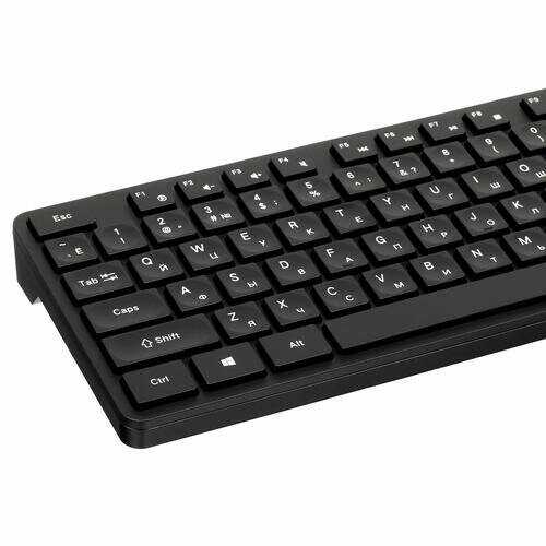 - + Очень крутая мышка, это прям фишка этого набора. Она БЕСШУМНАЯ, БЕЗЗВУЧНАЯ и очень приятная тактильно. Полноразмерная беспроводная клавиатура. Латиница и кириллица нанесены белой краской, одинаково (не наклейка и не доп.накрашивание), оба языка белого цвета, что визуально смотрится намного лучше, чем варианты с другим цветом.