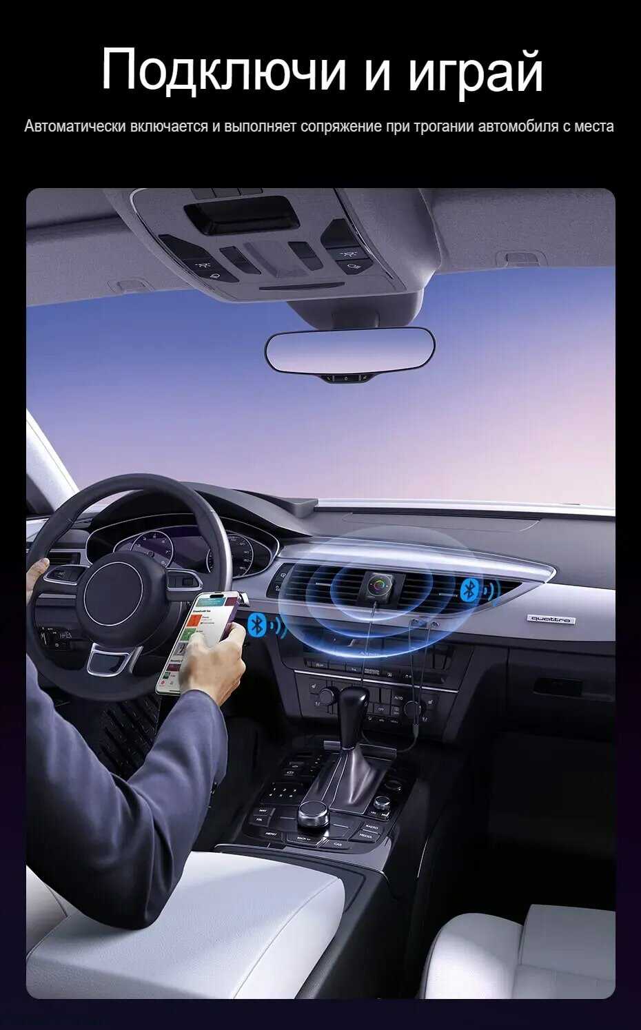 Отзывы о Автомобильный приемник-адаптер UGREEN Приемник Bluetooth с микрофоном и шумоподавлением [Bluetooth 5.4]