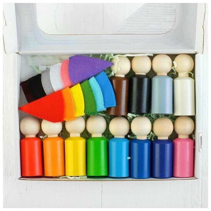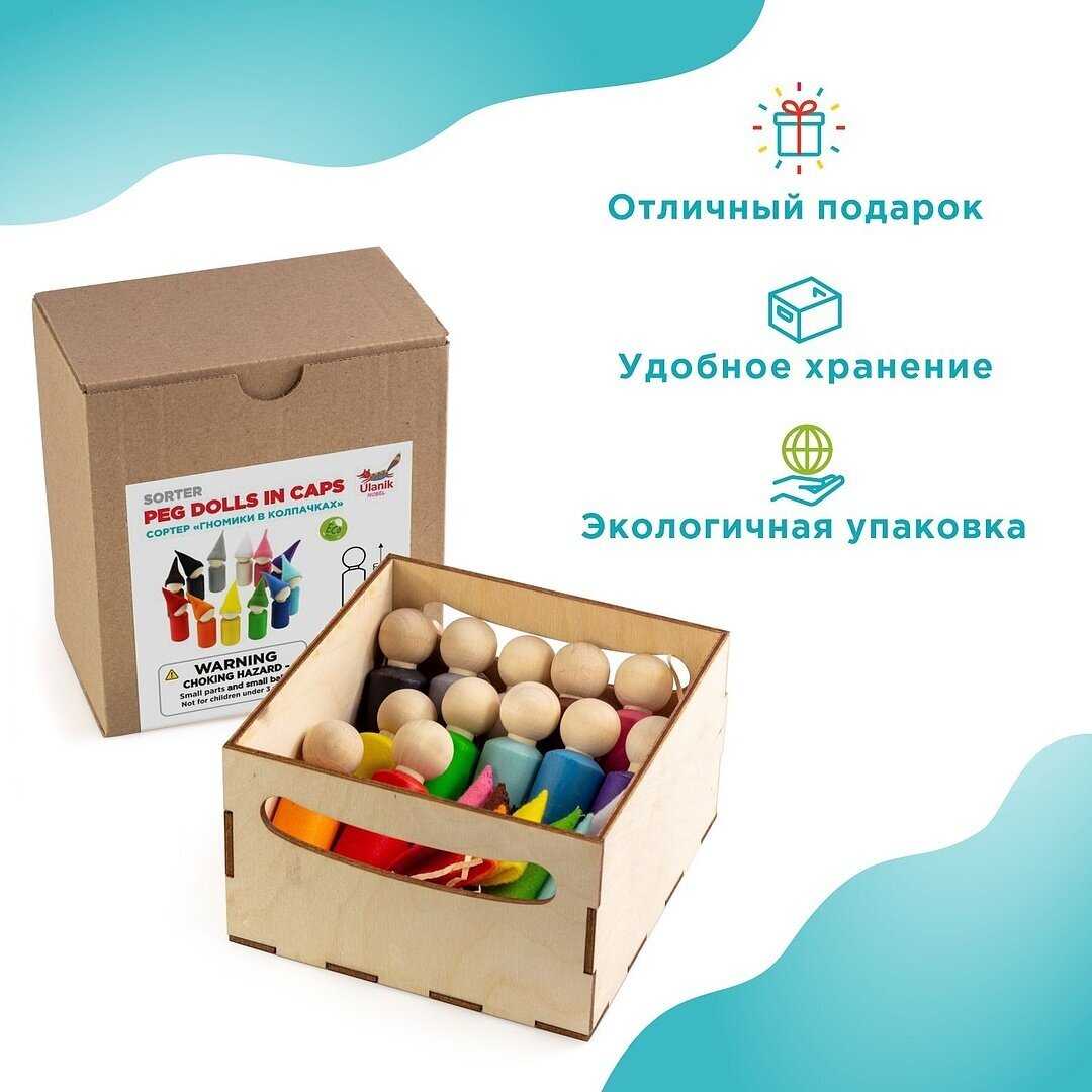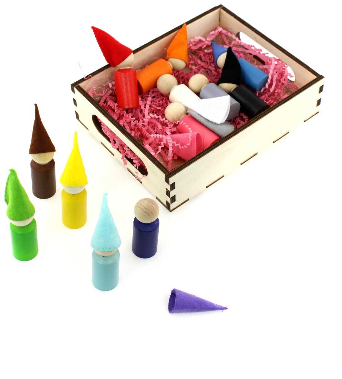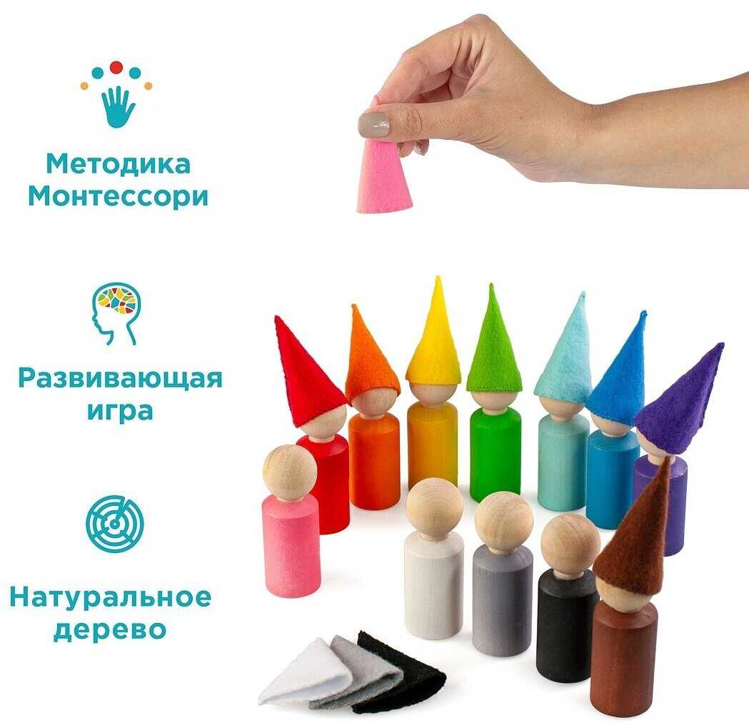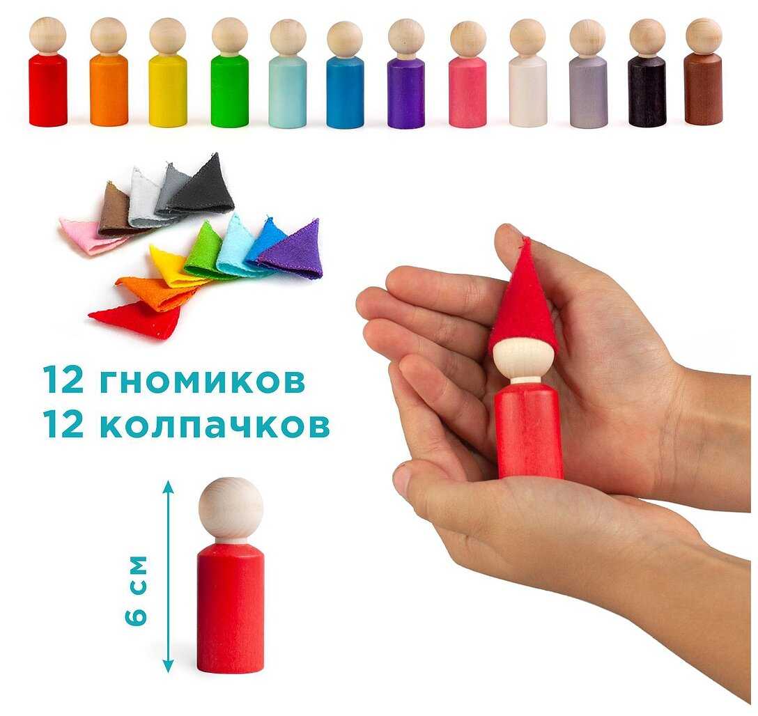 Комплектация : | Сортер "Разноцветные гномики", размер: 2 х 6 см, 12 шт., в колпаках |