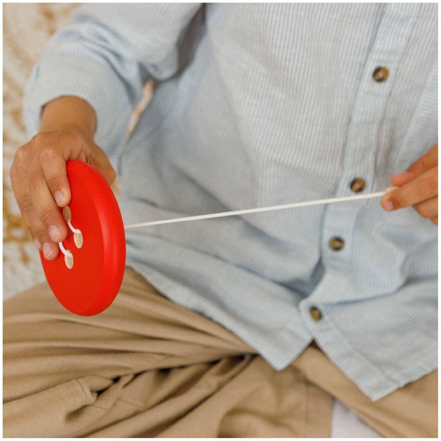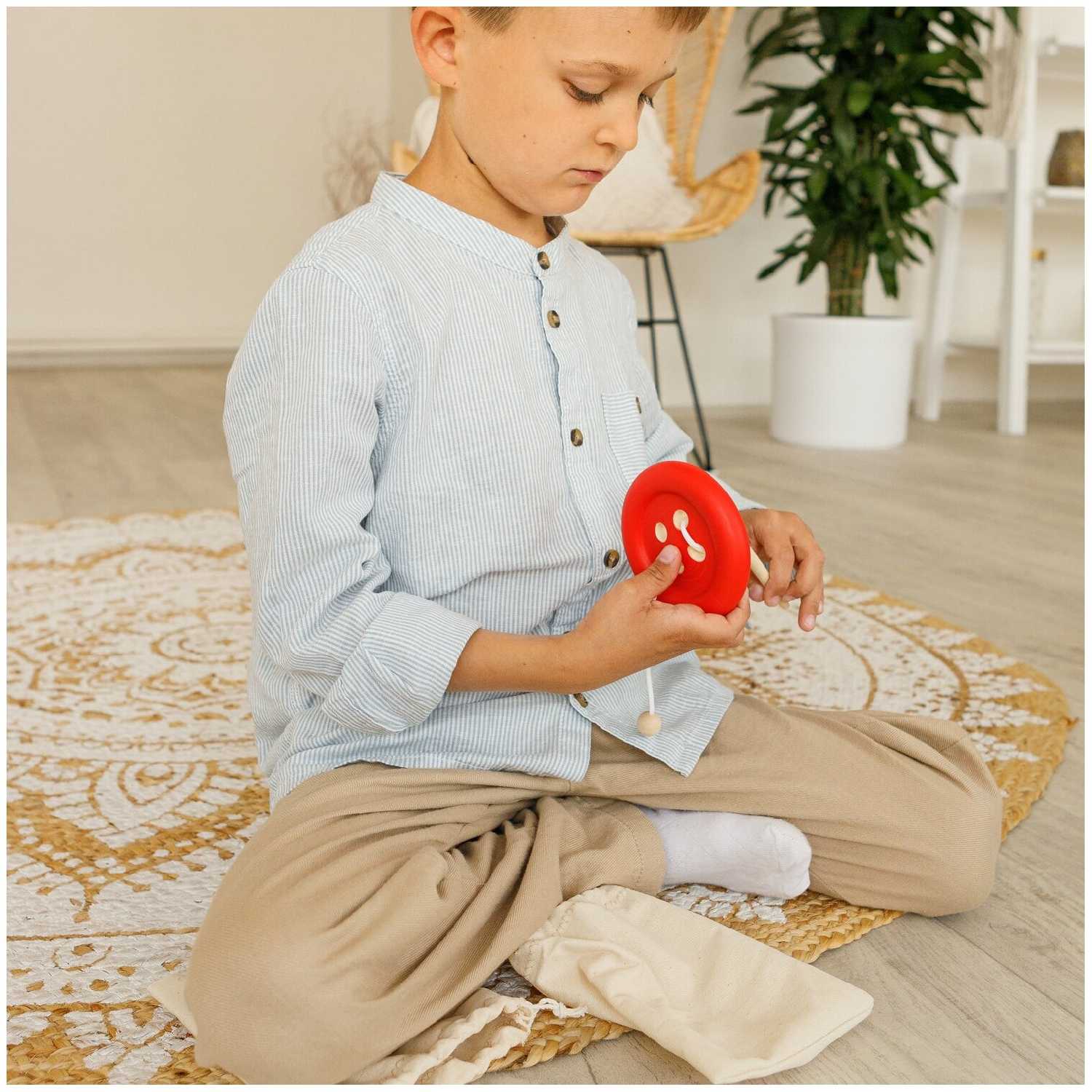 - + Отличная игрушка, пуговка в мешочке, можно брать с собой