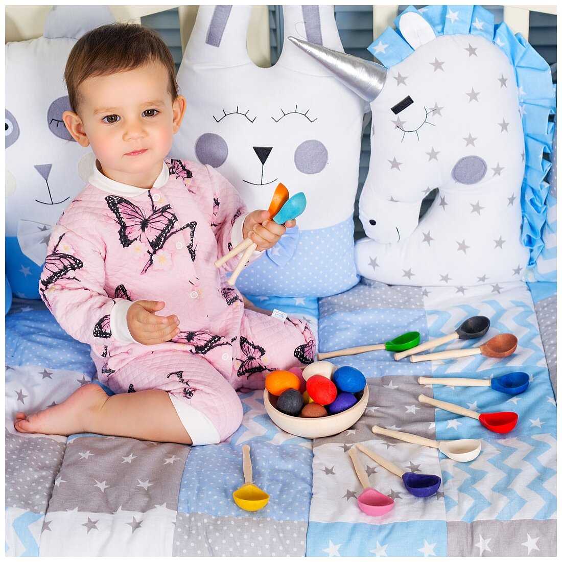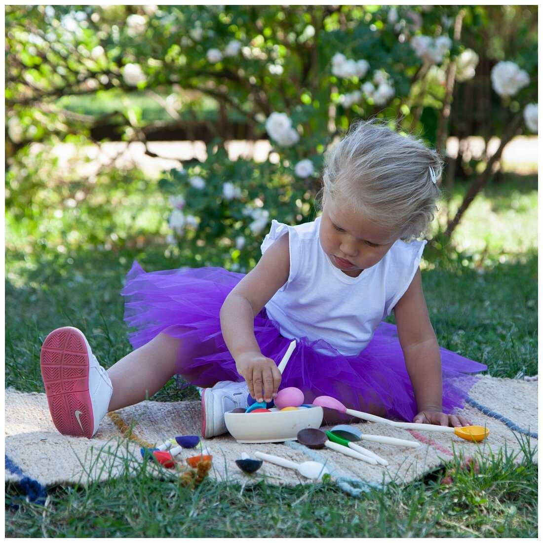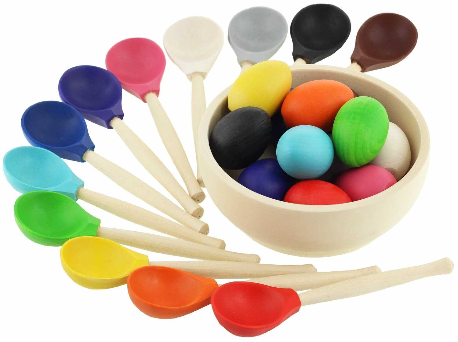 - + Яркие предметы, ребёнок легко усвоил цвета, можно придумать свои игры