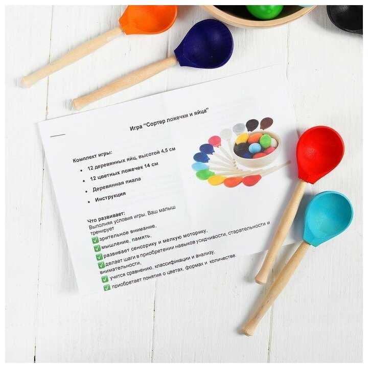 - 12 яиц, - 12 цветных ложек, - 1 пиала, - инструкция. |