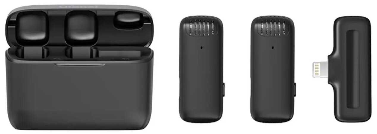 | Подробная комплектация : | Микрофон-передатчик с зажимом TX - 2 шт. Приемник с разъемом Lightning для iPhone - 1 шт Зарядный кабель - 1 шт Зарядный кейс-чехол - 1 шт |