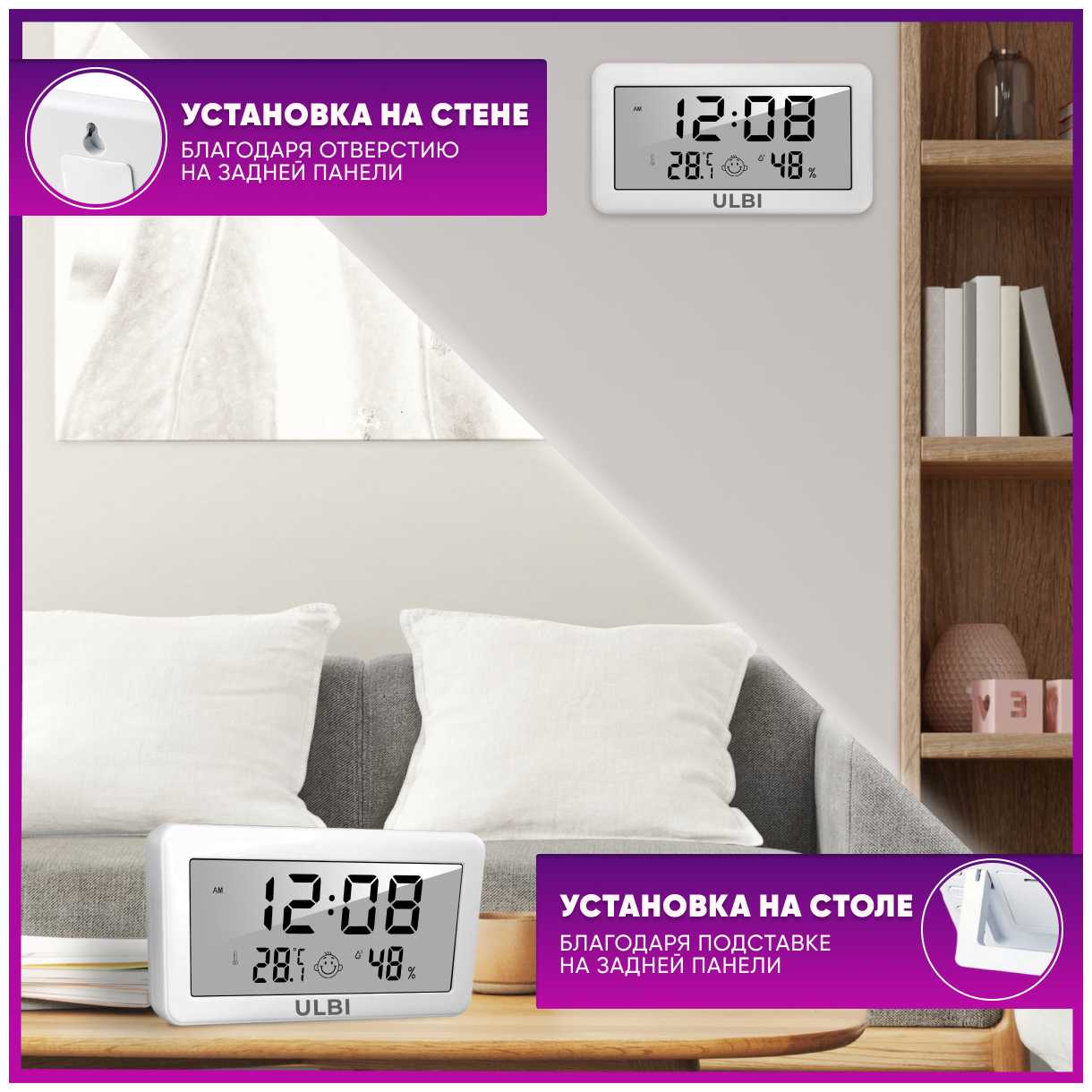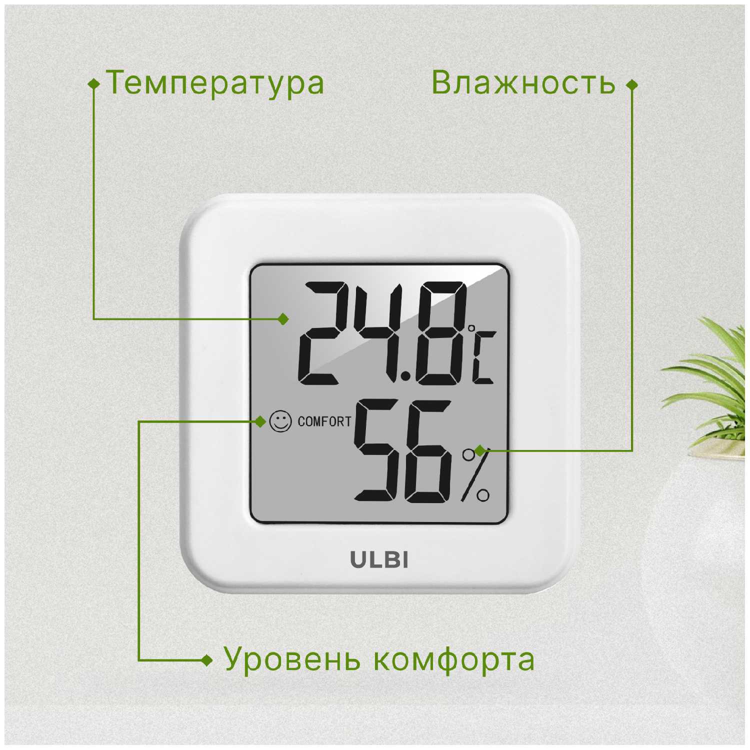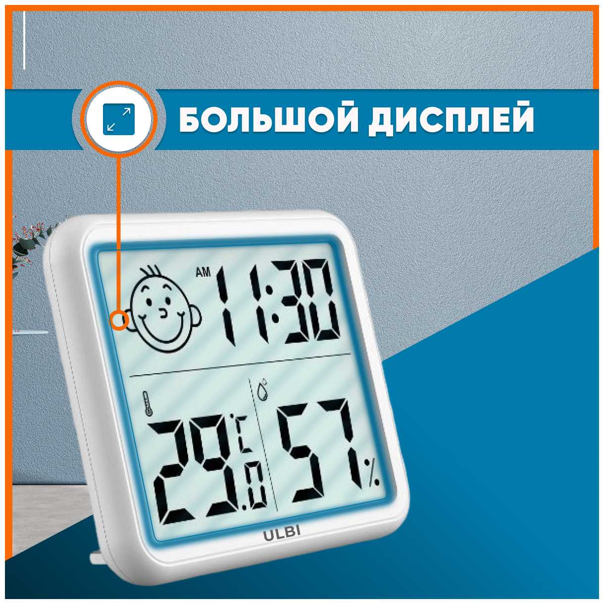 - Дополнительный смайл-индикатор (сухой/нормальный/влажный воздух) упрощает интерпретацию данных.