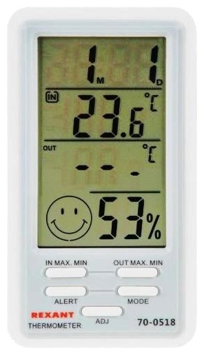 - + весьма компактный, показывает влажность а температуру воздуха до 0,1°, то есть 23.4 например, но погрешность всё-таки присутствует