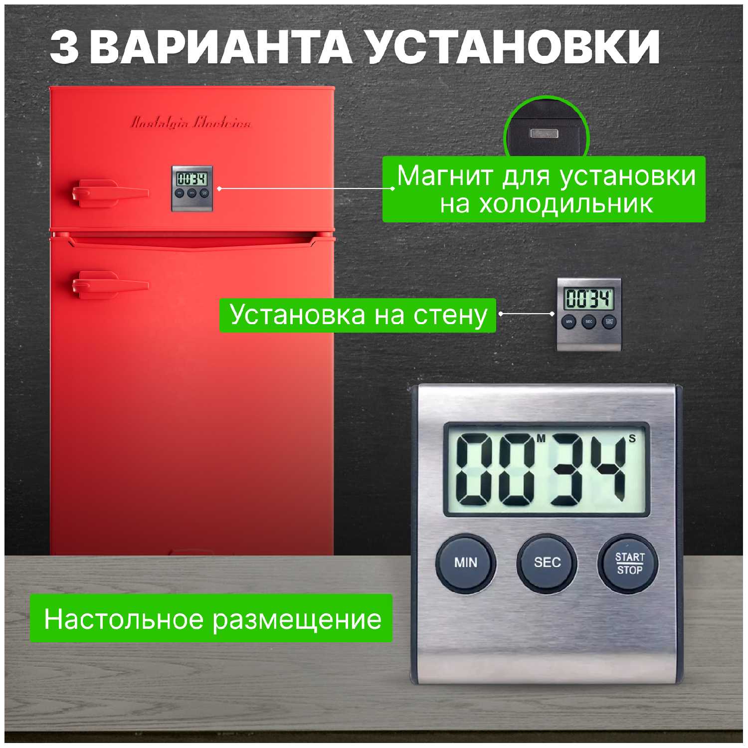 дел, можно поставить на стол, можно на магните прикрепить к холодильнику или к другой металлической поверхности. Всё понятно, прекрасно работает. Работает как прямой так и обратный отсчёт времени. Прямой отсчёт времени можно останавливать и снова запустить для продолжение отсчета .