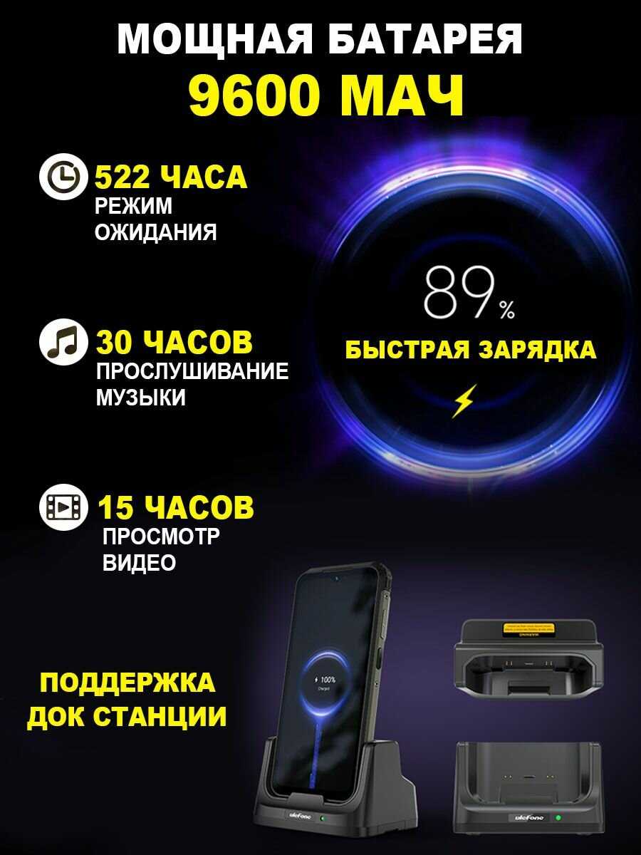 - Поддержка быстрой зарядки через док-станцию сокращает время восстановления батареи.