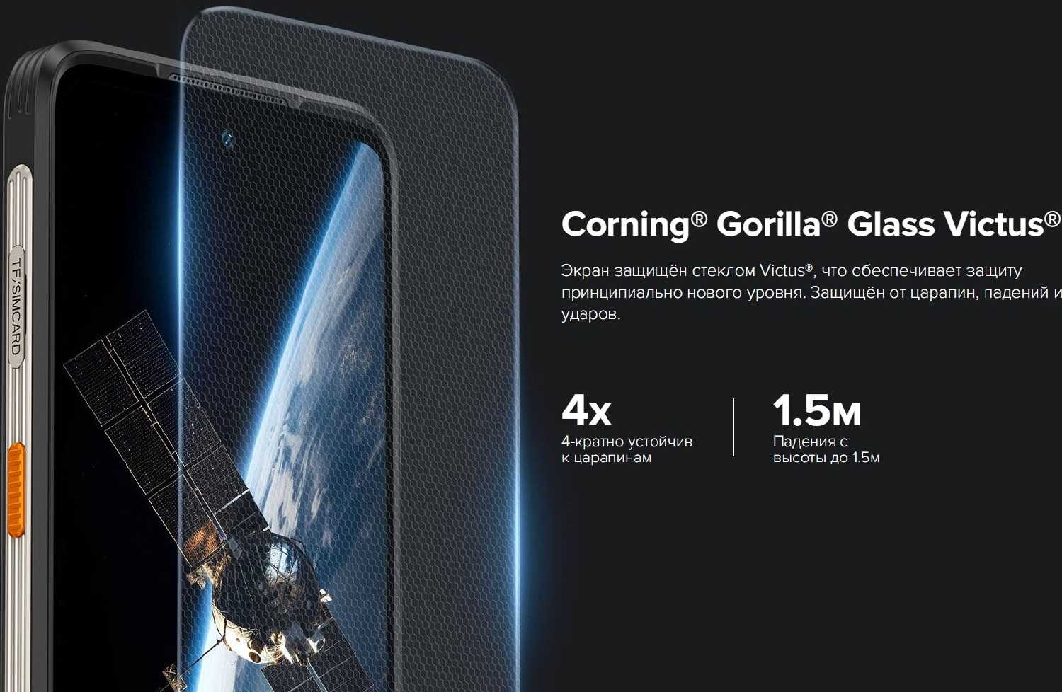 Защищеность смартфона осуществляется за счёт толстой рамки из мягкого пластика по периметру, что даёт амортизацию(при желании можно продавать ногтем). После серьёзных падений остаются вмятины. Но статус брони смартфона он всё таки оправдывает. Но не при экстремальном использовании, тут уж сам виноват в поломке. Заказал ту же модель, но другого цвета. Пс телефон работает, кроме перечисленного выше фунционала