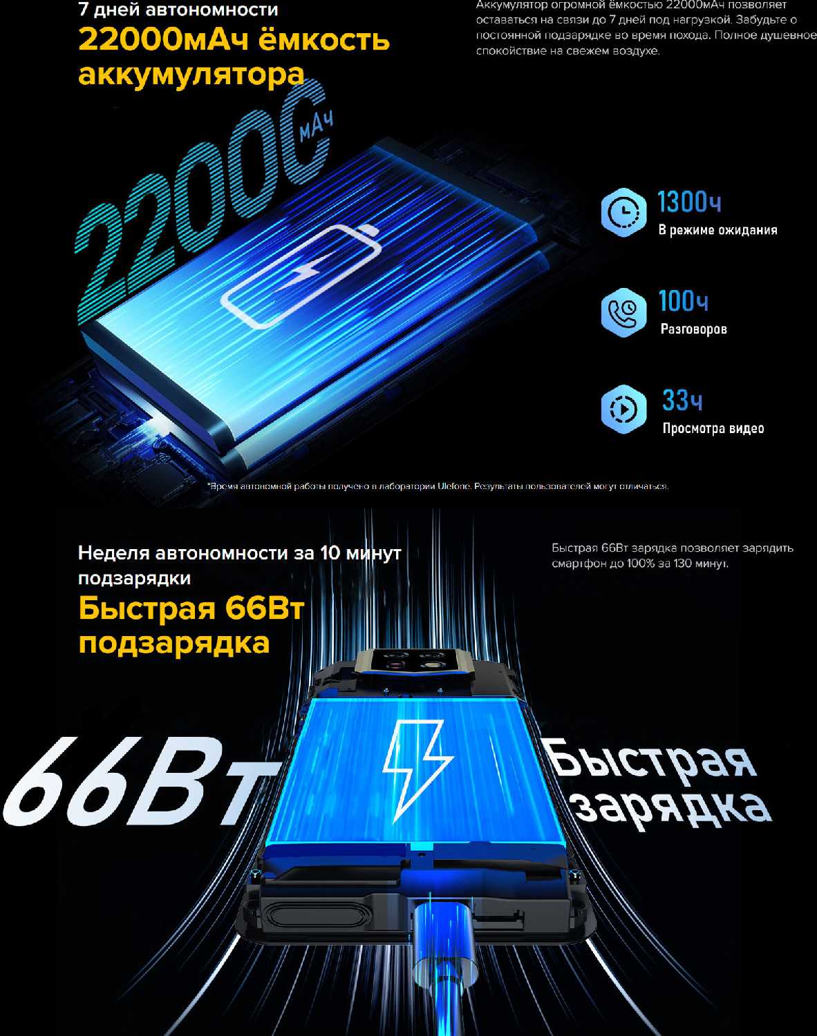 - Полный цикл заряда 22000 мАч занимает 5-7 часов даже с родным 33W адаптером.