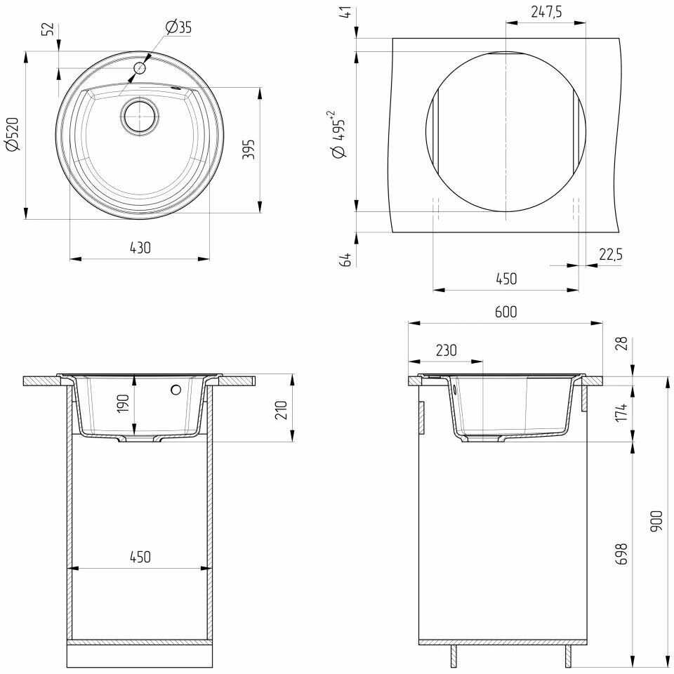 - форма мойки: круглая
