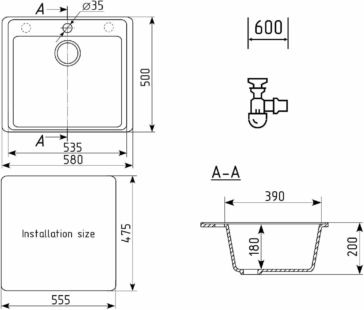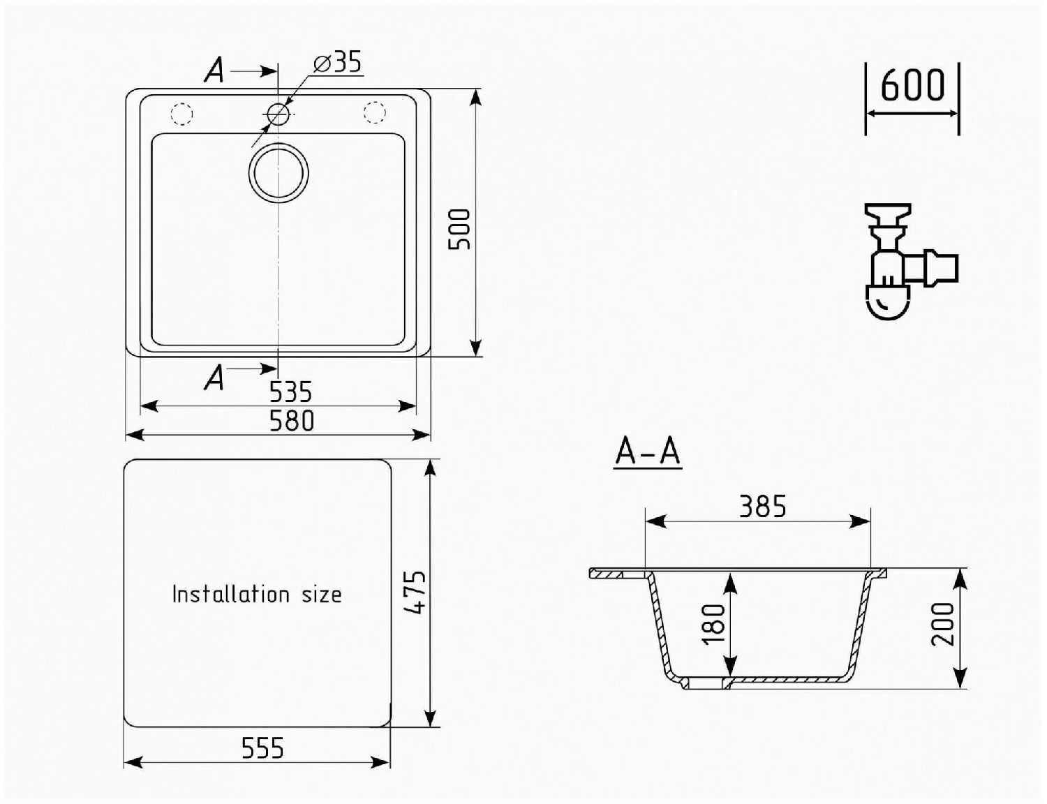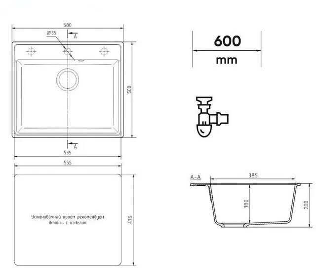 - + Удобная ширина 58 см можно мыть большие кастрюльки и заделать кран для фильтра.
