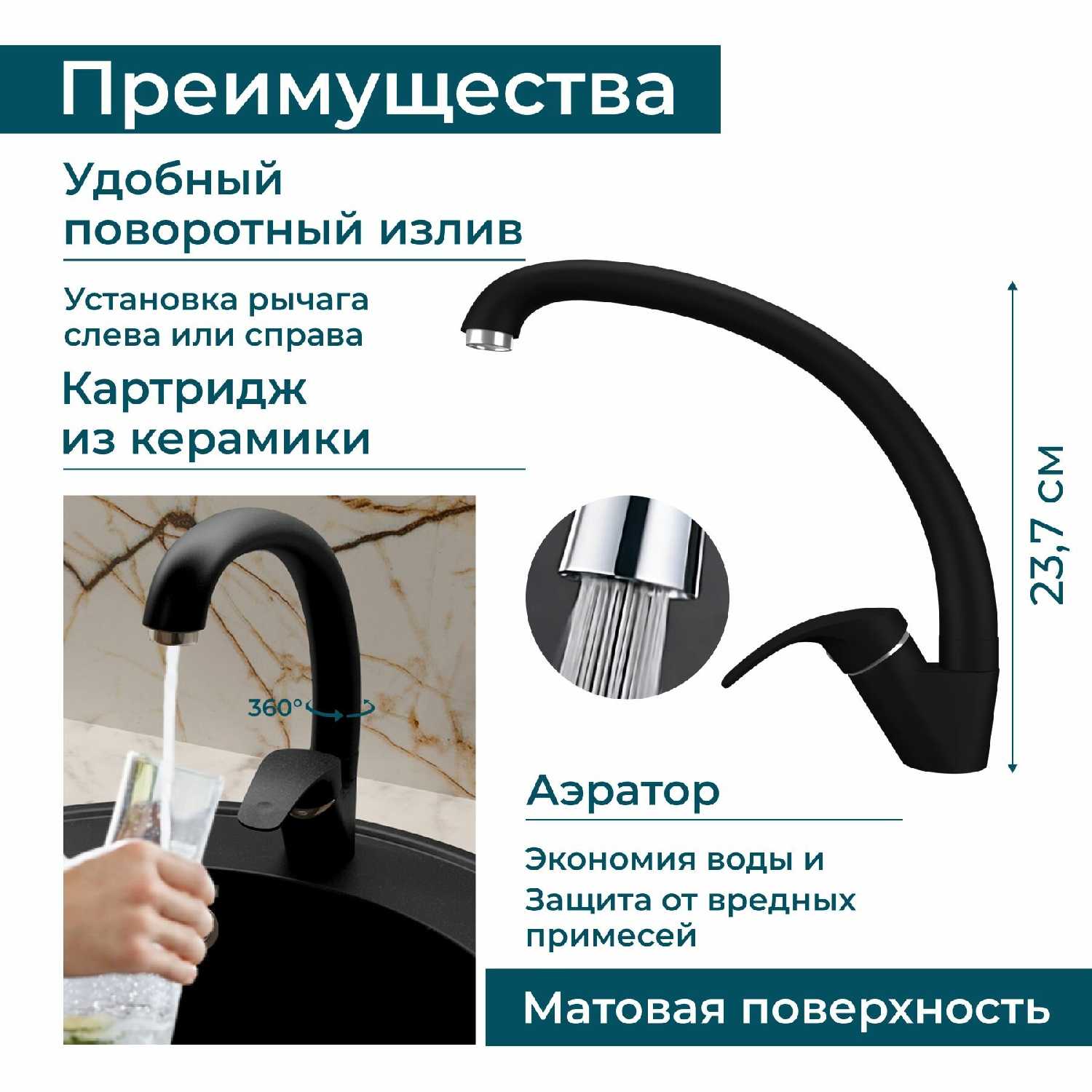 аэратор, встроенный фильтр, донный клапан, поворотный излив
