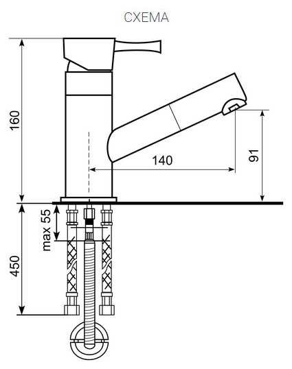 - + Для нас было принципиально чтобы при малой высоте (окно напротив мойки должно открываться не задевая кран) к тому же лейка была на шланге. Внешне кран - огонь.