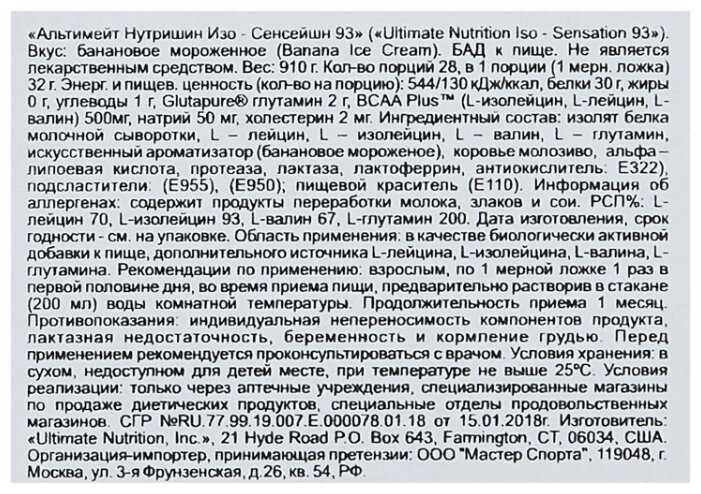 Ultimate Nutrition ISO Sensation 93?