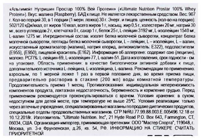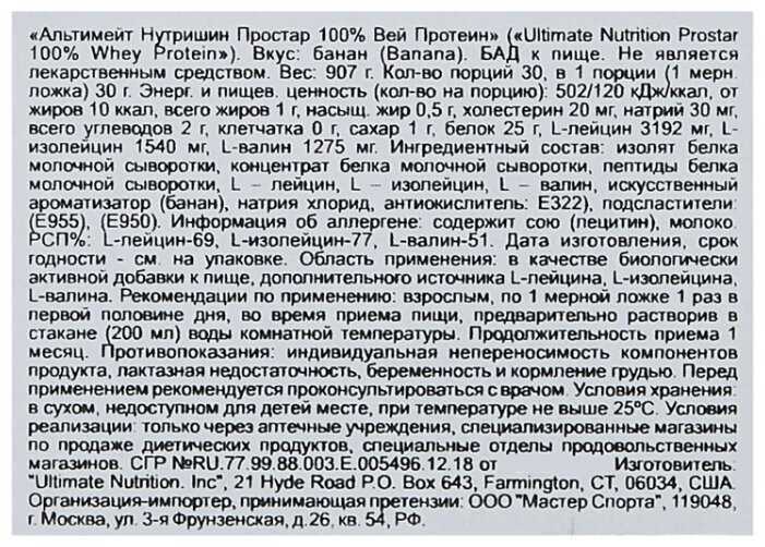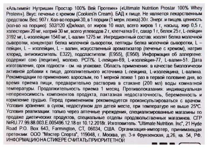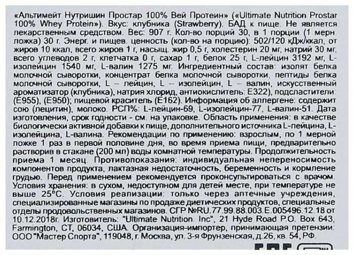 Обзор Ultimate Nutrition Prostar 100% Whey Protein - мнение пользователей*: