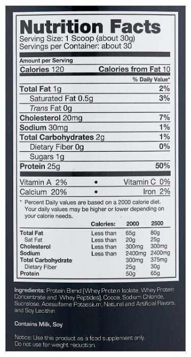 - 25 г белка на порцию, включая сывороточный концентрат, изолят и гидролизат, что обеспечивает быстрое усвоение.