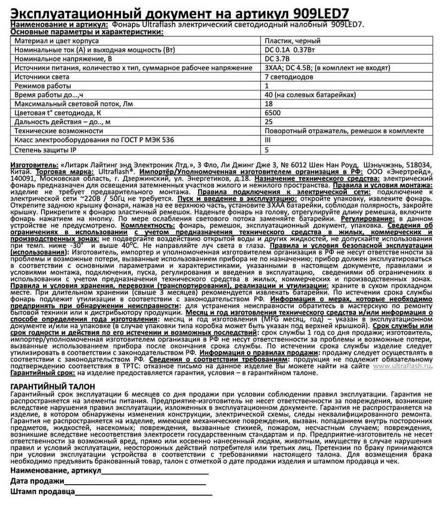 Отзывы о Налобный фонарь Ultraflash 909LED7