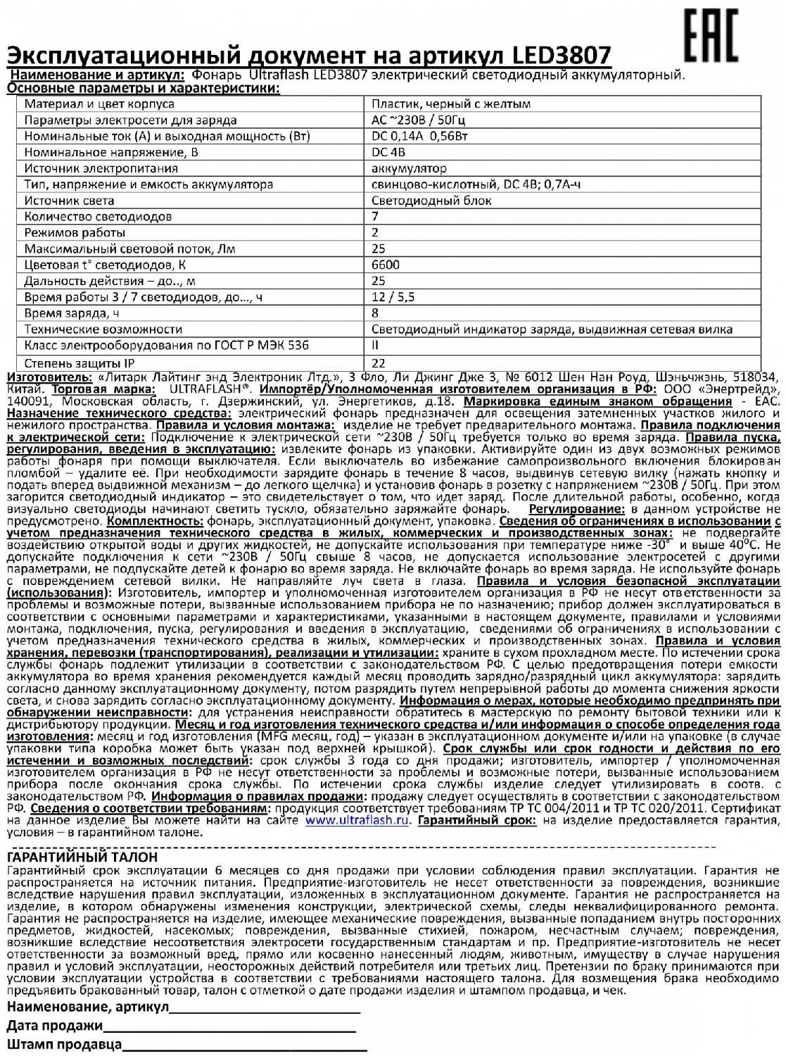 Отзывы о Ручной фонарь Ultraflash LED3807