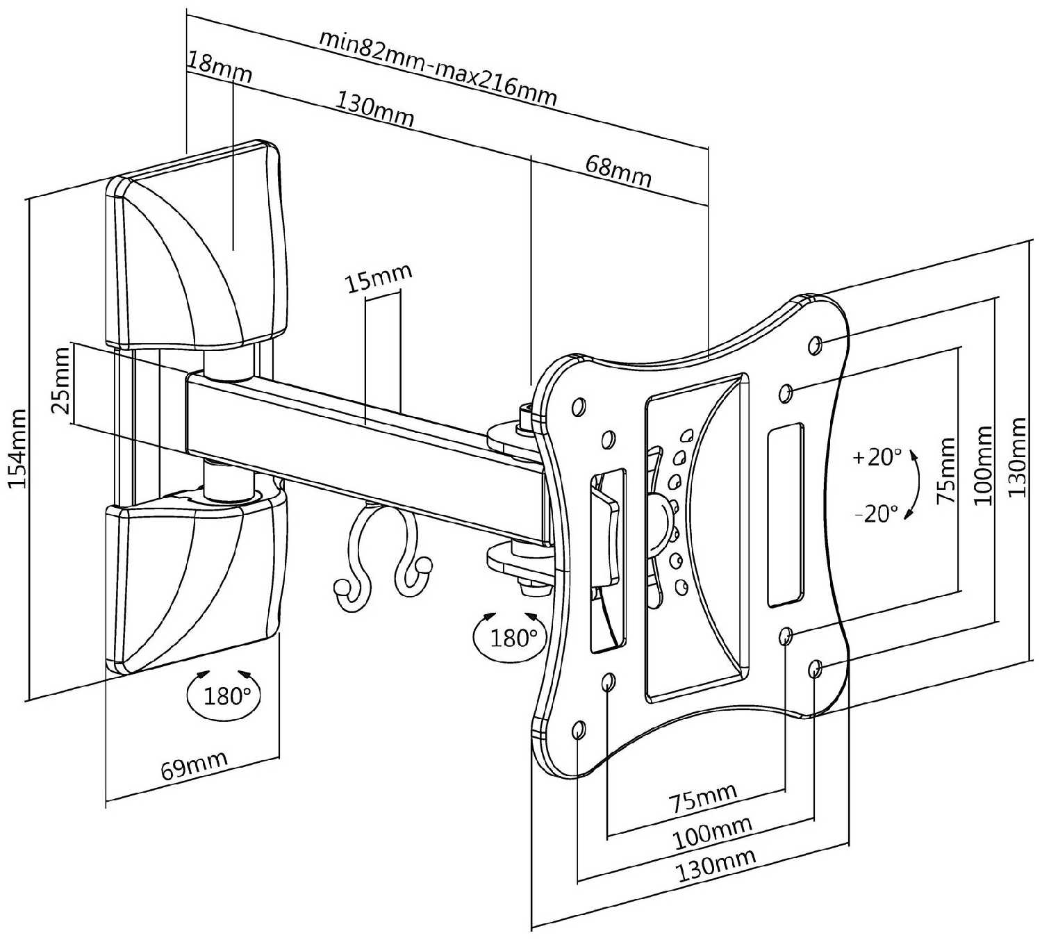 | Регулировка : | наклон, наклон и поворот, отступ от стены, по высоте, поворот |