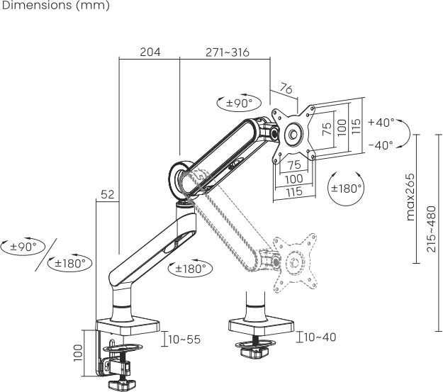| Тип крепления : | наклонное, поворотное, с вращением, с регулировкой высоты |