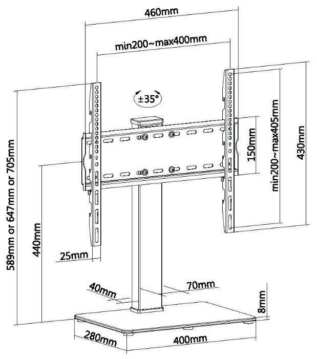 Купили эту подставку, т.к. большой ТВ 55" не влез по длине на комод. Подставка очень понравилась - солидное основание, качество комплектующих и фурнитуры (ничего не вихляется), инструкция по сборке очень доходчива и удобна. ТВ разместился отлично и надёжно.