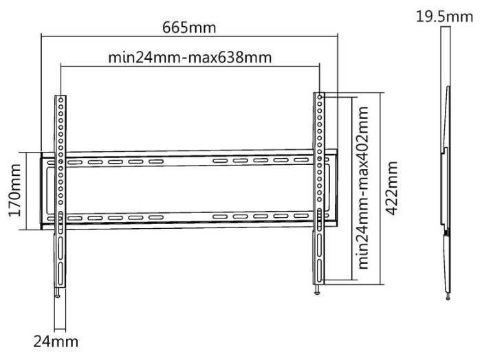 Покупал для 65 дюймового тв LG (VESA 300×300, вес около 22,5 кг). Телевизор сам по себе довольно толстый, кронштейн выбирал по принципу чем тоньше тем лучше. Тоньше этого не нашел. Практически и не виден в щели между стеной и ТВ. Но этот плюс для кого то может стать минусом, т.к. за телевизором не остается места для прямых разъемов, выход из ситуации или искать телевизоры с разъемами, торчащими в бок, либо использовать угловые коннекторы на кабелях. На некоторых моделях ТВ даже боковые порты станут недоступными, рука не пролезет, надо будет заранее предусмотреть подключение. Металл у кронштейна довольно тонкий, но если прикрутить к стене этот недостаток будет несущественным, заявленный вес выдержит. В конструкции рамки не очень понравилось что крюки цепляются только за верхнюю часть рамки, нижняя полоса только для фиксации от снятия, которая сделана очень неудобно 2 длинных болтающихся болта, которые надо закрутить через щель снизу ТВ длинной отверткой. Лишний раз снимать телек со стены точно не захочется. Я вешал тв на стенку из гипсокартона, благодаря ширине рамки нагрузка распределиться более ли менее равномерно, к тому же можно закрепить оба края в вертикальные стойки из профиля (ширина рамки 665мм больше стандартного шага стоек 400-600 мм). В целом, если кронштейн повесить и забыть нормально.