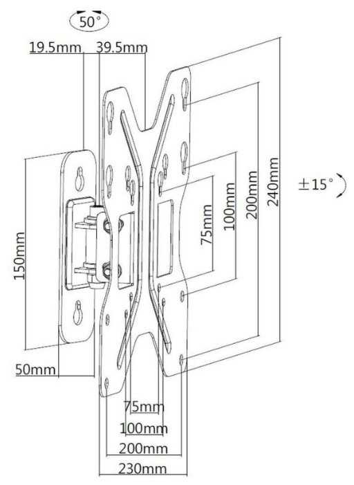 | Стандарт Vesa : | 100x100 мм, 200x200 мм, 75x75 мм |