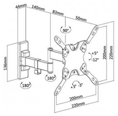 - Поворот по горизонтали, вертикали, наклон вверх/вниз, выдвижение от стены.