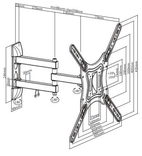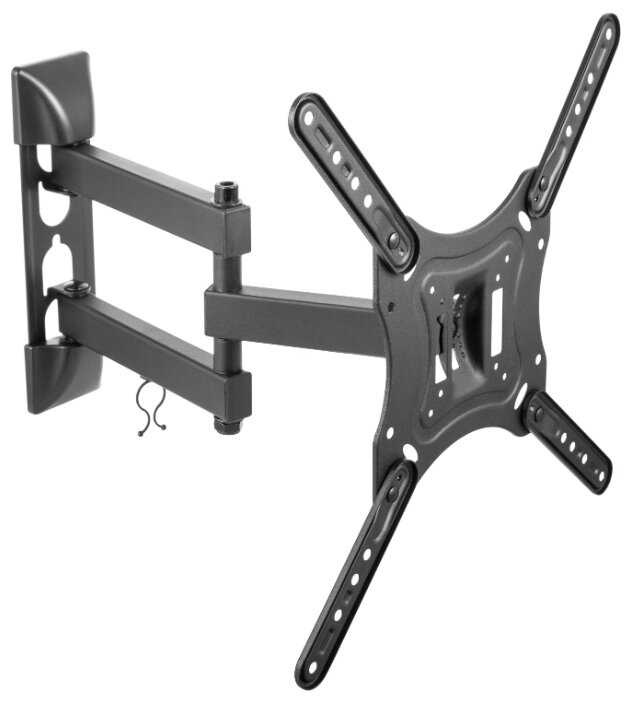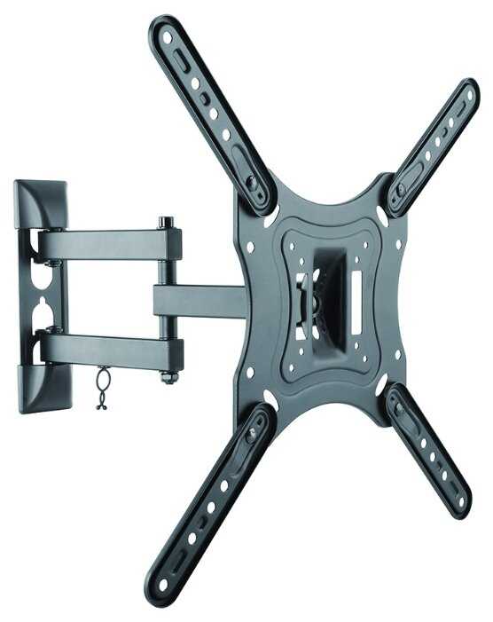 - + Достаточно крепкий. Качественный. Имеет функцию наклона и поворота. Большой диапазон креплений VESA к телевизору. Присутствует отверстие для кабеля. В комплекте монтажный набор.