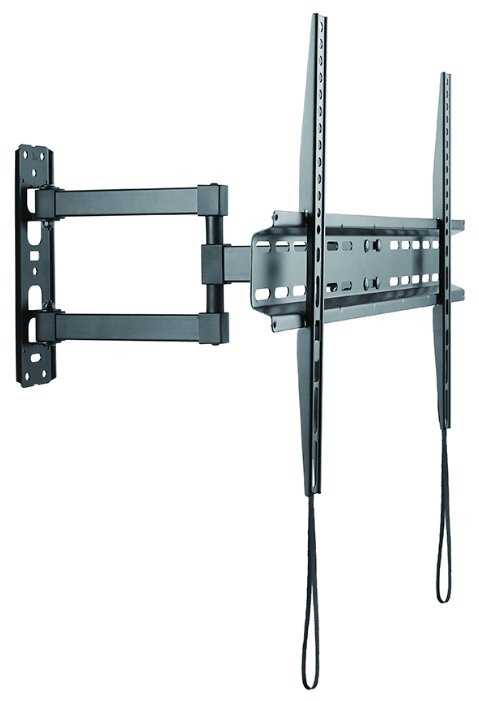 Телек 14 кг, 50". Повесил. Тут был отзыв, что криво весит, вроде потому что хлипкий - на деле его надо посредине планки подвинуть. Также можно исправлять косяки того, насколько неровно прикречено в стену, просто по кланке влево-вправо, он дает немного угла. Повесили, за ТВ кинул приставку и прочие удлинители - места полно. Удобно крутить (нам важно). В общем можно смело брать для тех, кому нужен поворотный кронштейн.