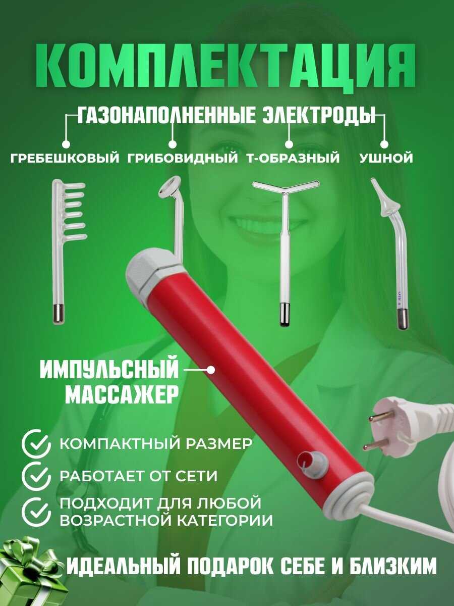Комплектация : | импульсный массажер, гребешковый электрод, полостной электрод, грибовидный электрод, ушной электрод, руководство по эксплуатации и паспорт изделия, сумка для хранения |