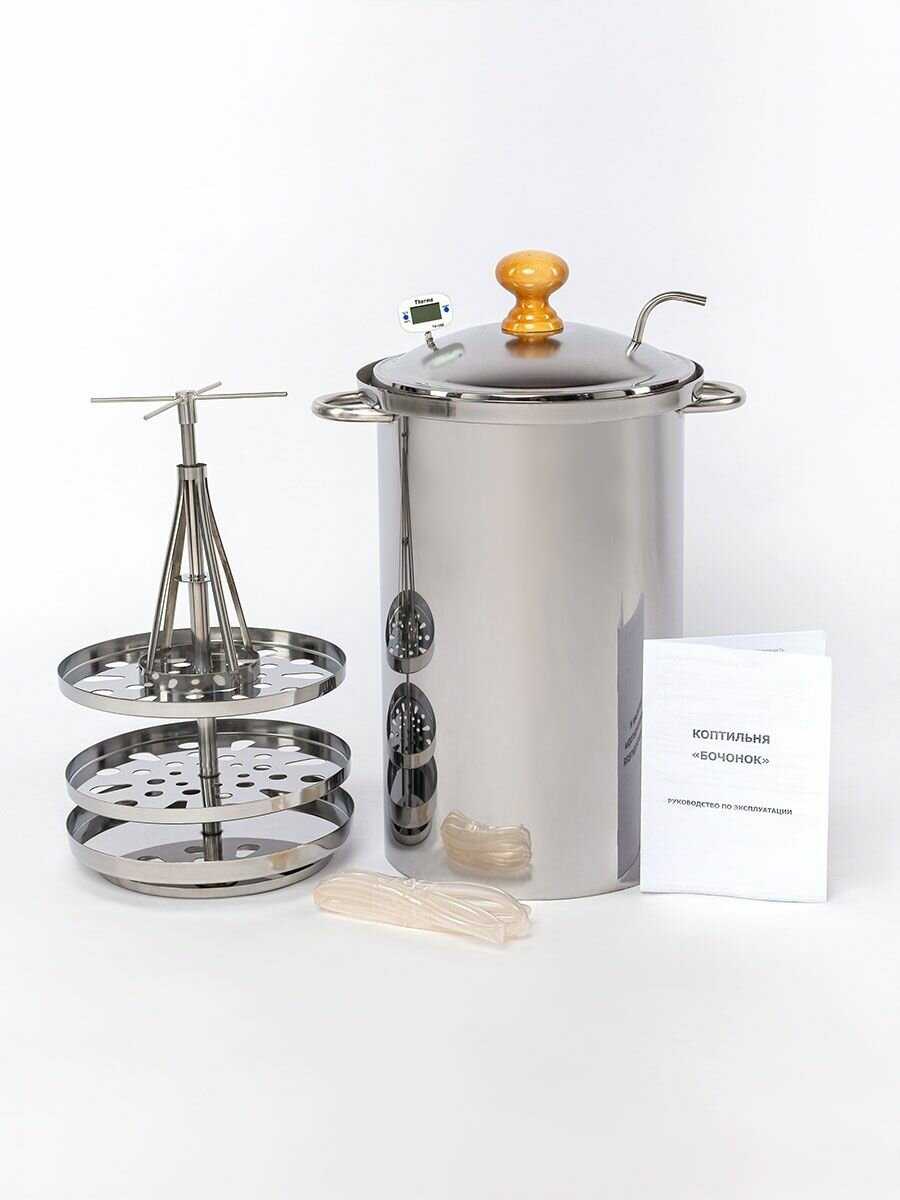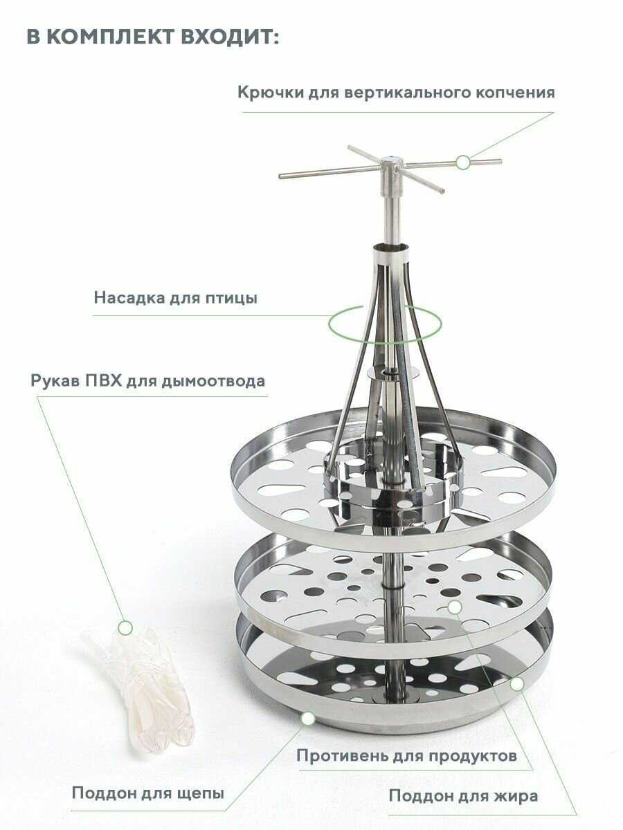 Дополнительная информация : | Комплектация: корпус коптильни - 1 шт, стержень -1 шт, поддон для щепы - 1 шт, поддон для жира - 1 шт, противень - 2 шт, подвес - 1 шт, крышка коптильни - 1 шт, термометр цифровой - 1 шт, рукав ПВХ - 15 м, насадка для курицы - 1 шт, руководство по эксплуатации - 1 шт. |