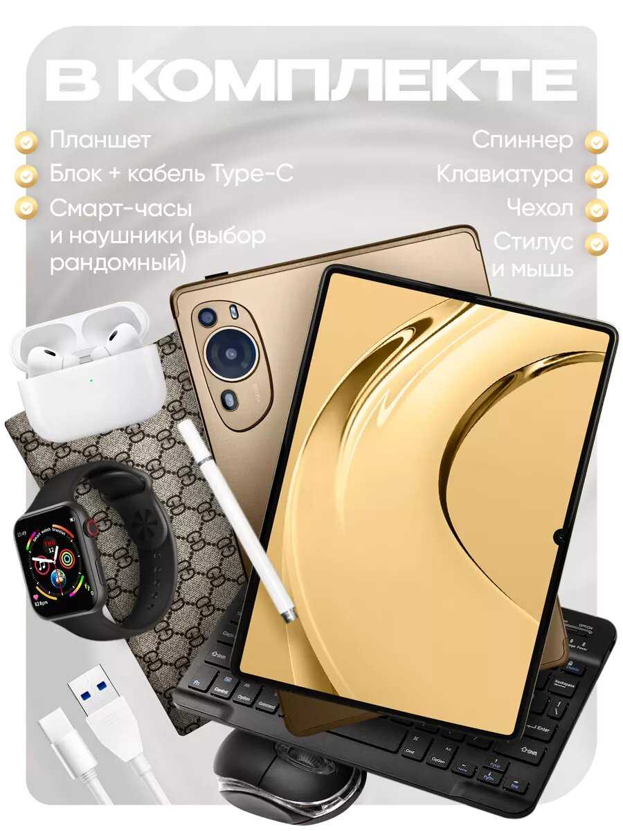 Широко форматный экран, в комплект входит мышка и клавиатура, а также смарт часы и наушники, прост в обращении. Ребёнок в восторге, рекомендую