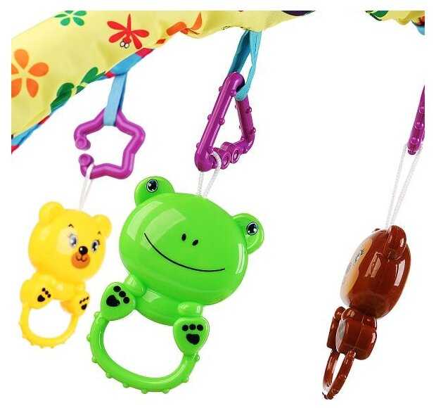 - + Яркий, красивый, ничем неприятным не пахнет. Дочь в восторге. Может одна лежать - заниматься, а я делаю домашние дела. Игрушки разного цвета и изображают разных зверей.