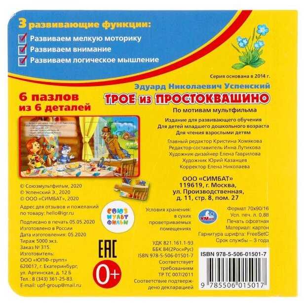 13 отзывов пользователей o Умка Книга-пазл Трое из Простоквашино