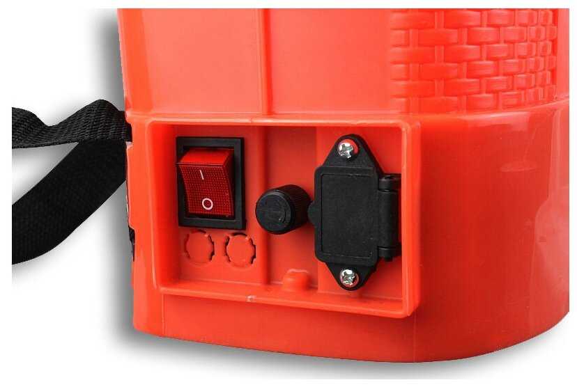 Провода зарядки короткие, розетку на уровне пояса приходится использовать с удлинителем или ставить опрыскиватель на стул. Блок громоздкий, не показывает полный заряд четко. Литиевый аккумулятор заряжается быстро и служит долго. Стандартный разъем несет риск неправильного подключения. -