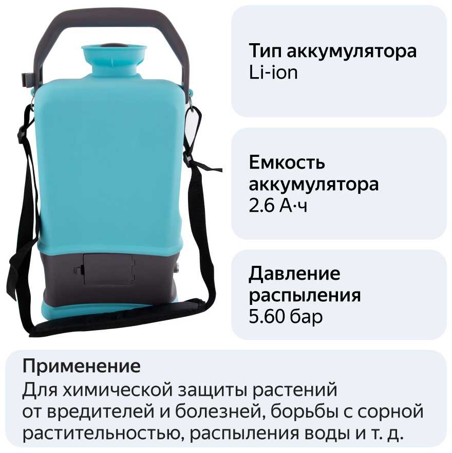 По опыту пользователей, заряда хватает на обработку 5–7 полных баков объемом 5 литров, что эквивалентно 25–35 литрам раствора. Например, один владелец за один цикл обработал 6 соток картофеля, используя три заливки. Время непрерывной работы достигает 2 часов при среднем напоре, а зарядка занимает около 90 минут. -