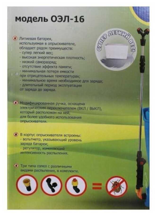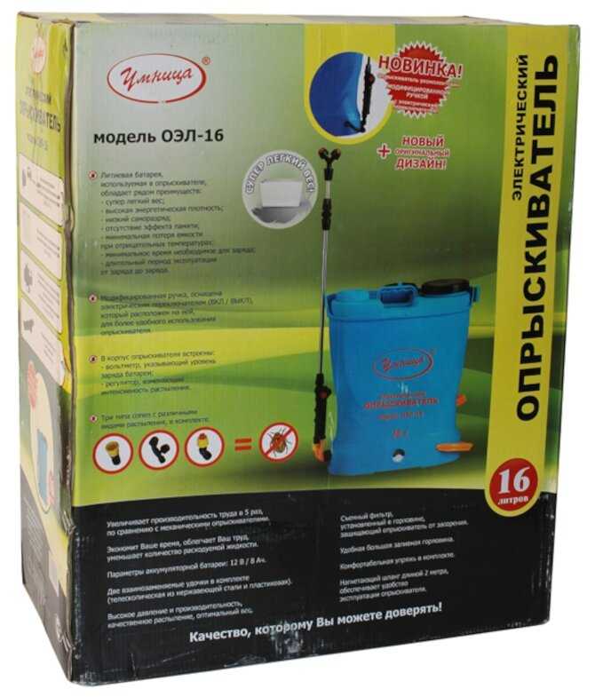 Дополнительная информация : | Опрыскиватель электрический Умница ОЭЛ-16 |